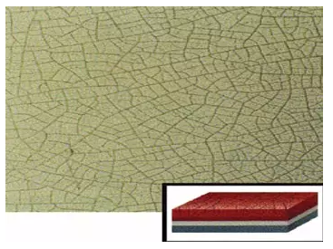 The paint surface is severely tarnished with a lot of tiny crazing. The crazing is similar to the cracks in the soil in a dry pond. The crazing often appears triangular, star-shaped or irregularly radiating. The crazing usually occurs on the finishing coat, but sometimes it penetrates into the undercoat.