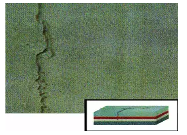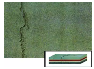 In the paint repair area, the crack of the area filled with putty or the primer results in the crack of the finishing coat.