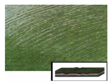 There is obvious seam penetration on the surface of the finishing coat, and the seams are parallel to each other. They are most common on black or other dark-colored paint surfaces.